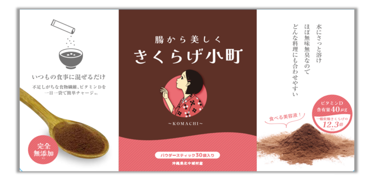 1包で不足しがちな食物繊維とビタミンDで簡単チャージ!きくらげ小町が便秘のお悩みや美容をサポートします。
