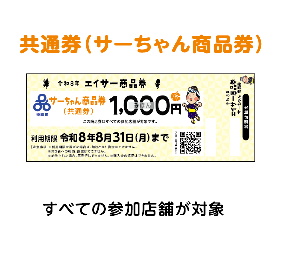 | 「沖縄市エイサー商品券」についての詳細は下記サイトまたは電話番号までお問い合わせください。 沖縄市HP:https://okinawacity-eisa.com/coupon_user/ 沖縄市エイサー商品券事務局 TEL:0120-025-125(10:00~16:00、土日祝日も営業) |